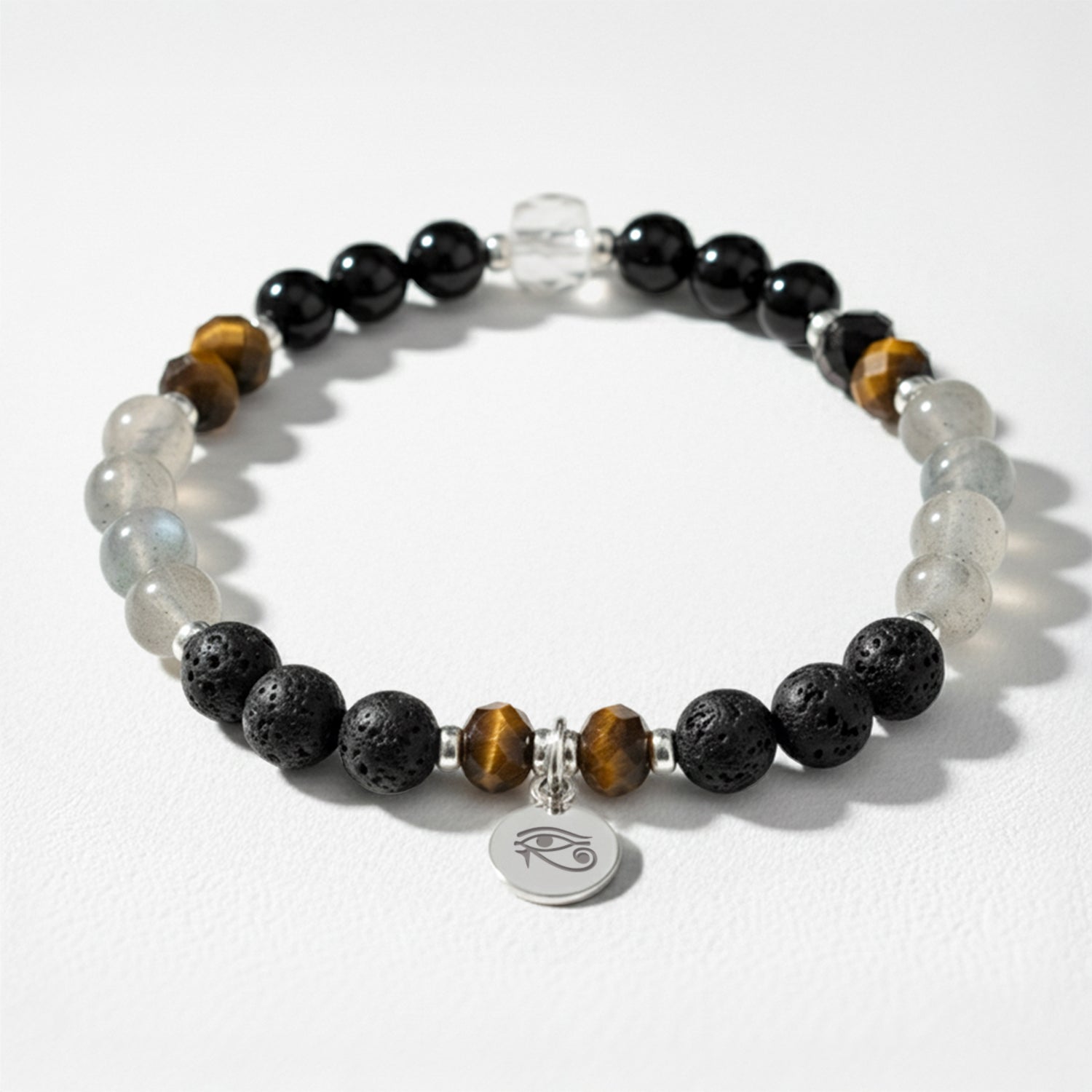 Our negative energy protection bracelet combines Tiger’s Eye, Black Tourmaline, Lava Stone and Labradorite gemstones - a potent mix of protection crystals ready to wrap you in a force field of positive energy! This healing bracelet worn every day serves as a powerful amulet, forming a shield that protects you from psychic attacks, EMF, absorbing unwanted negative energies and transmuting any already within the body.