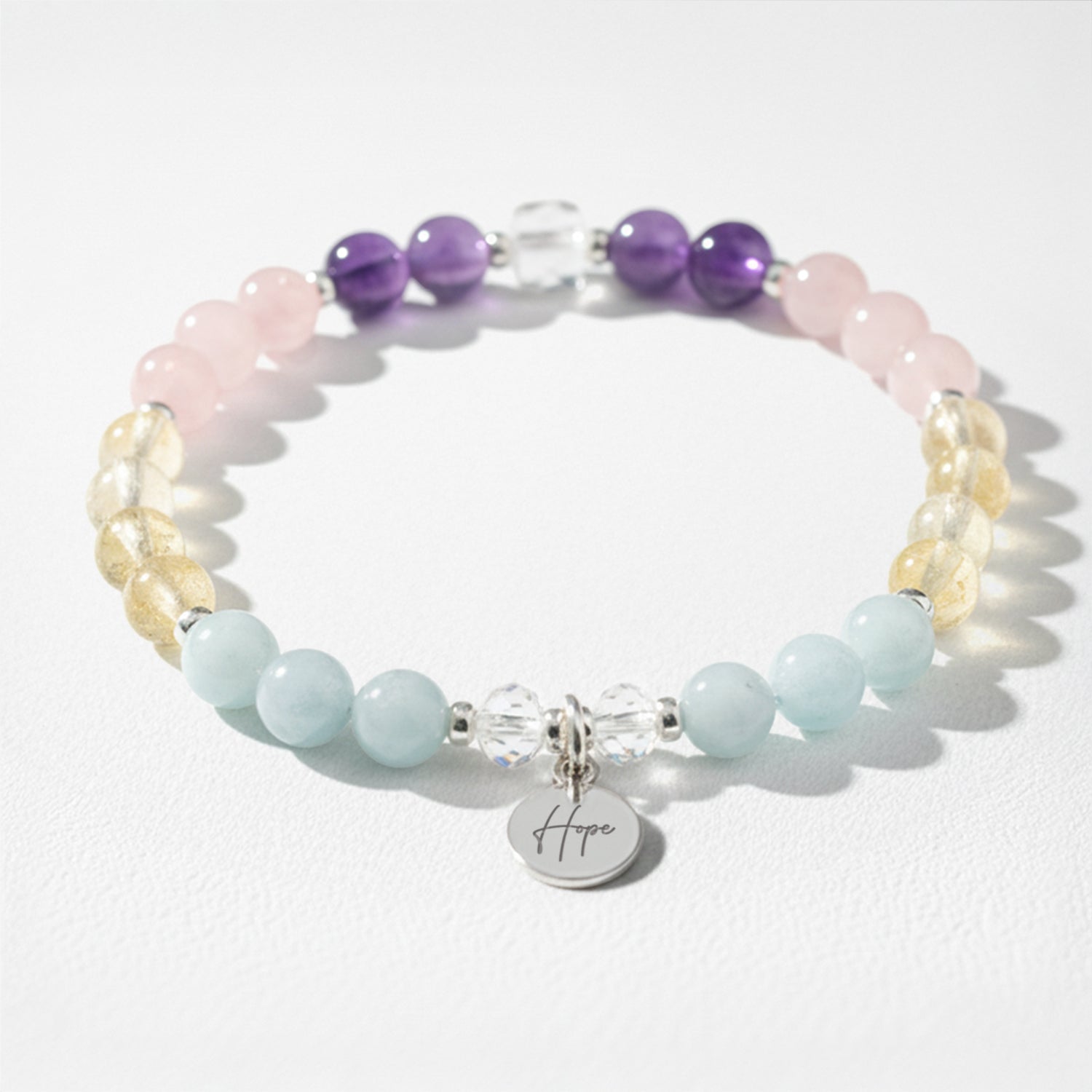 Your crystal bracelet comes in a beautifully presented Spirit Jewel pouch, along with a detailed crystal guidebook. The guidebook shares the healing properties of each gemstone, how to programme them with intention, and includes positive affirmations to support your journey. All gemstones are ethically sourced with care for people and the planet, and the bracelet is made with genuine 925 sterling silver for lasting quality and beauty.