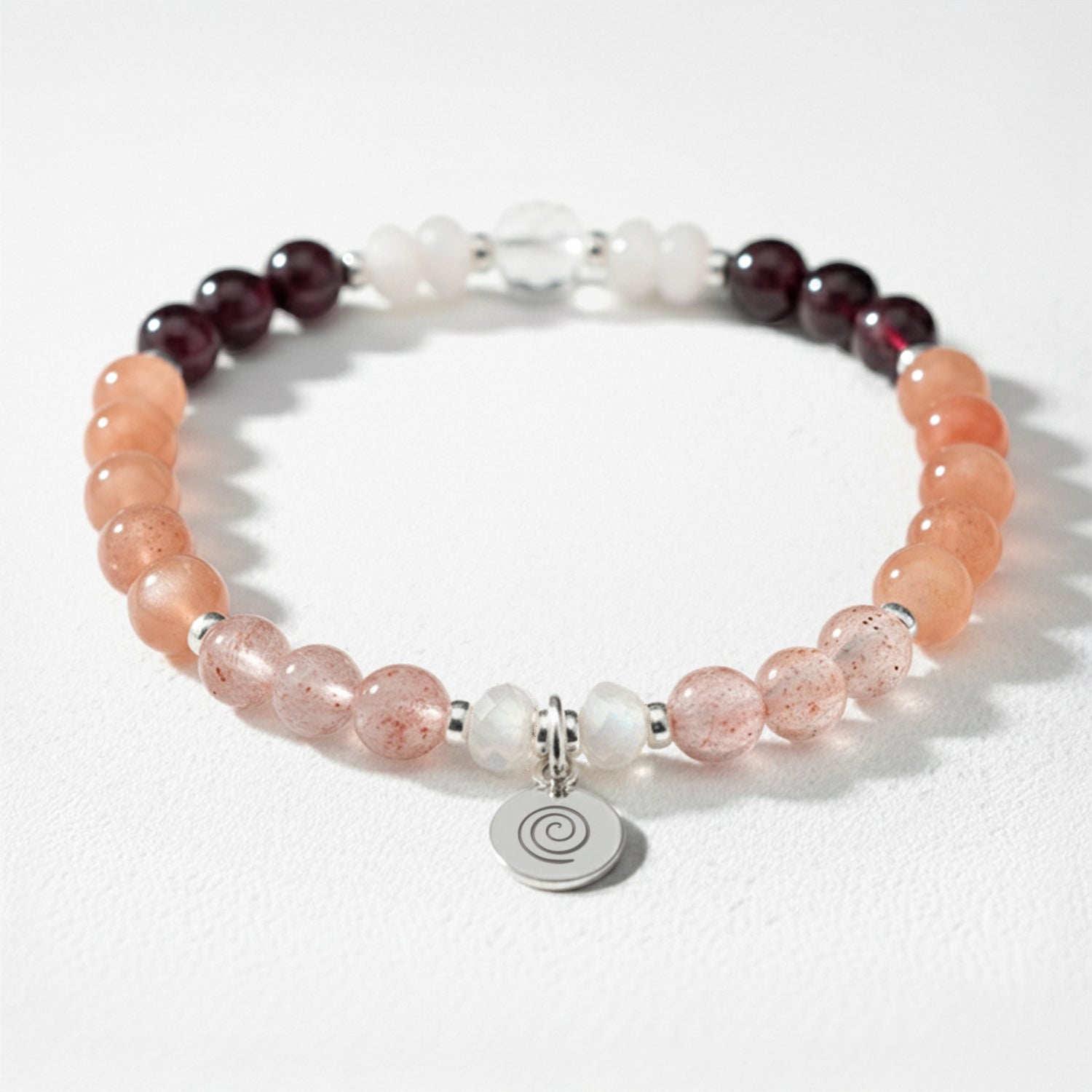 A wonderful support for your fertility journey, this vibrant crystal healing bracelet will bring positive energy to anyone preparing for IVF, conception or struggling to conceive. With its gentle, loving vibrations, we’ve chosen the best crystals for fertility, to encourage hormonal balance and energy flow through the lower Chakras. Our fertility bracelet contains stimulating Peach Moonstone crystals mixed with Garnet, Moonstone and Strawberry Quartz, to create an accessory you can wear every day to enhance the harmonious flow of energy back into the body.