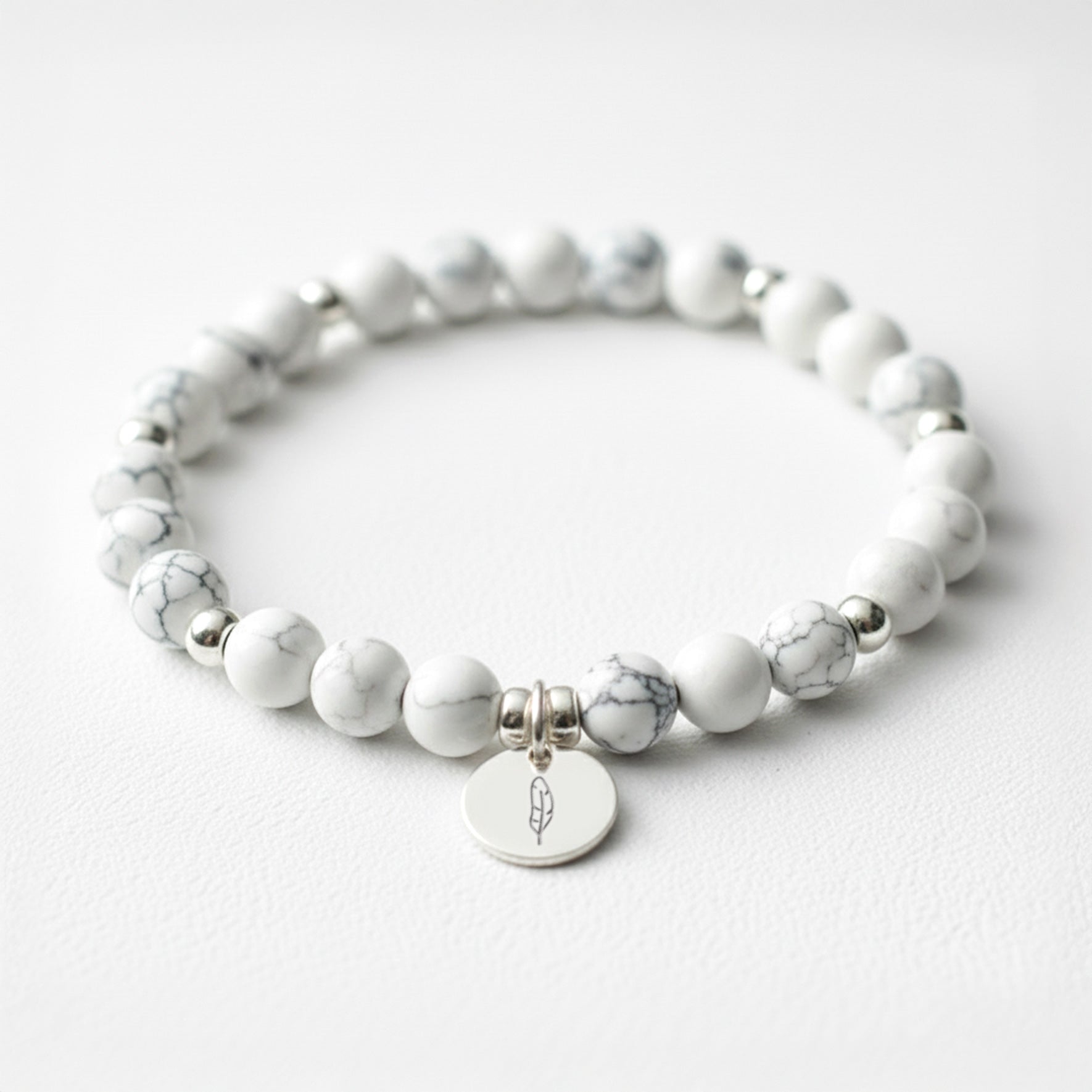 Embrace the subtle strength of Howlite, a natural crystal known to cradle you during moments of grief, gently guiding you towards acceptance and healing. This bracelet isn't just an adornment; it's a symbol of emotional well-being and inner calm, a constant reminder of the beauty of serenity.